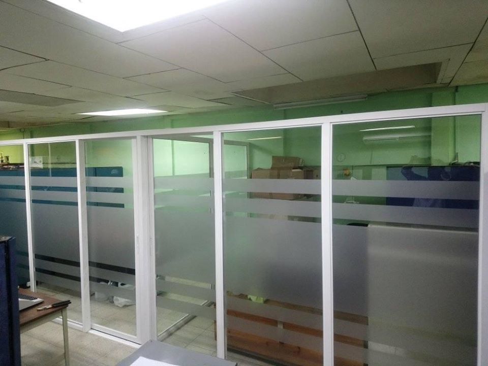 - Divisiones de oficinas en vidrio temperado.